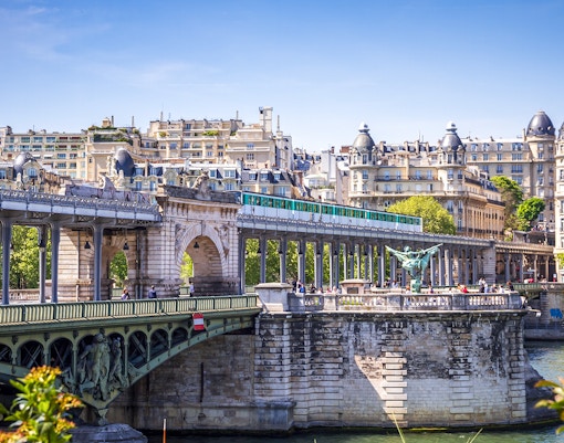 Double-decked bridge famous from Inception, offering cinematic Eiffel Tower views.