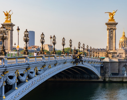 A stunning Beaux-Arts bridge with gilded statues and sweeping Seine views, one of the city’s most photographed spots.
