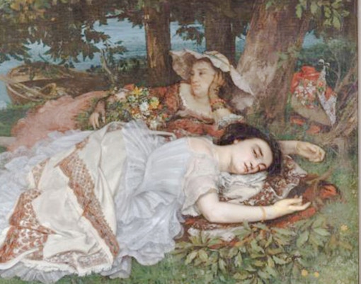 Jóvenes a orillas del Sena" de Courbet es un cuadro innovador que representa a un grupo de mujeres jóvenes disfrutando de un día de verano. Esta escena realista y sensual, poco convencional para su época, provocó un escándalo cuando se expuso en 1857.