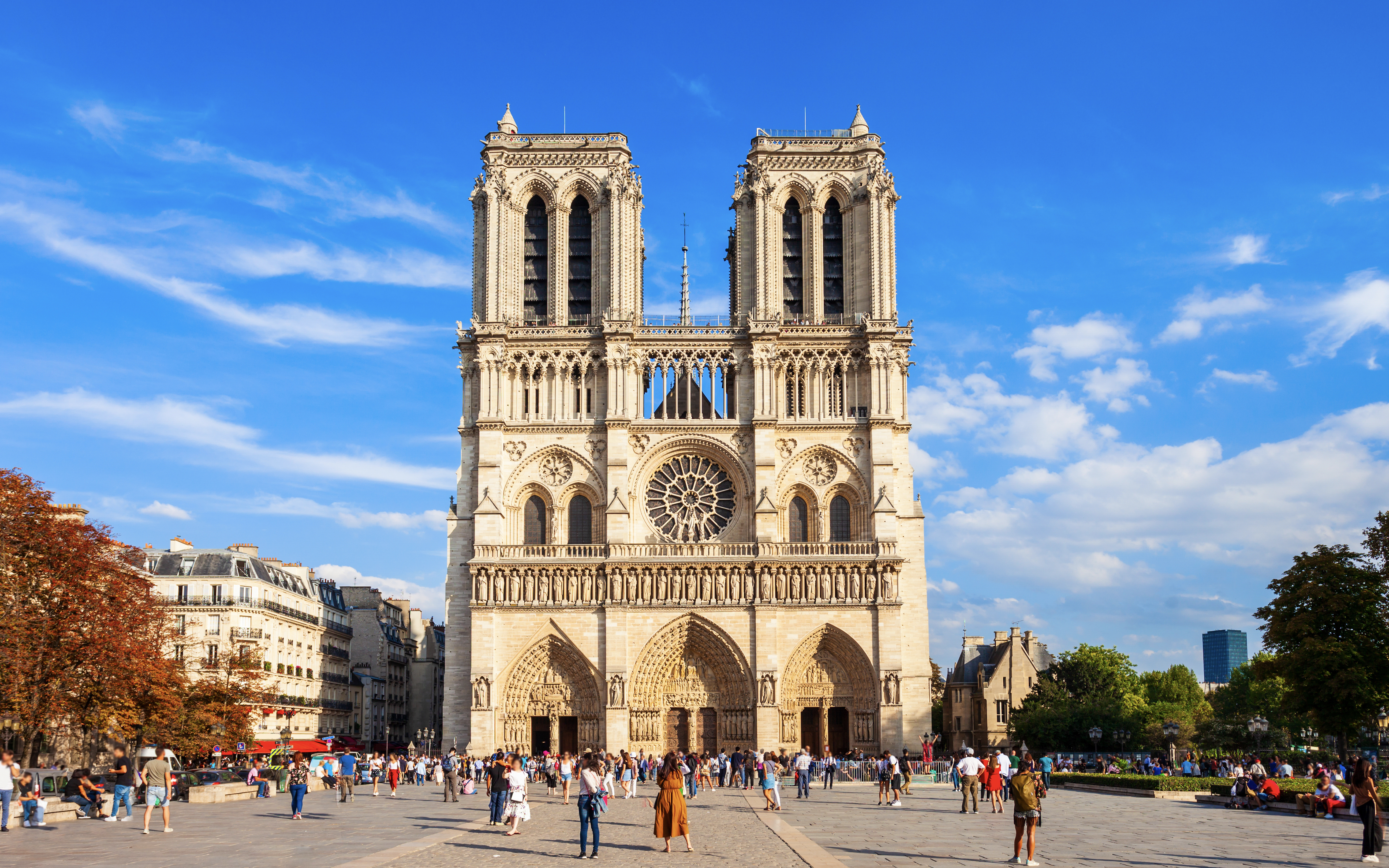 The main entrance is on the west façade, facing the Parvis Notre‑Dame. Currently, visitors have access to the interior sanctuary, treasury and crypt, and the towers now allow climbs following their reopening, although restoration on some outer sections remains underway, so certain areas may still be restricted.